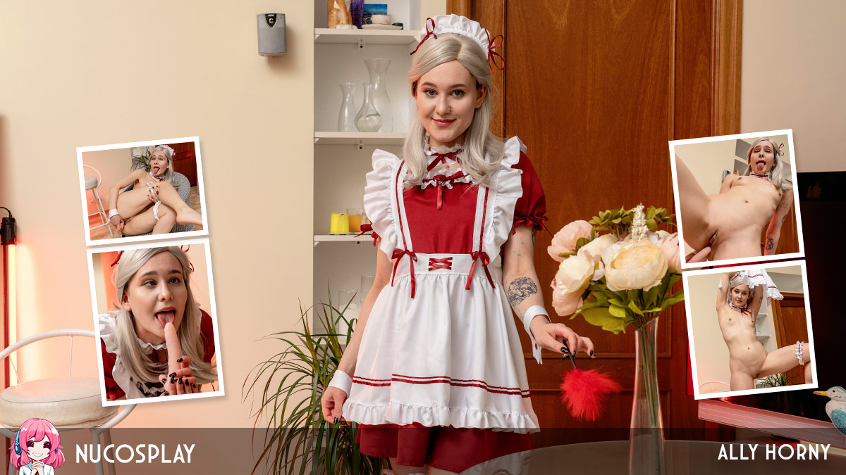 We couldn’t wait to have Ally Horny again on our site. And we are sure that she also wanted to return to the set. After all, that name she chose is not for nothing. After a great solo and a h... Read Moreardcore scene, we wanted her in another costume and in another solo masturbation session. This time, we let her choose the toy. And she brought one of her favorite dildos from home. She also was the one who chose the costume. Not only did she choose a maid costume, but she went with something a bit more interesting, with more lively colors. What made her extra sexy with this costume was the fact that she didn’t put on any panties. She’s so sexy when she faces away from the camera and bends over to let us look under her skirt. Her holes are just perfect and the way the camera captured them is out of this world. After a bit of teasing and stripping in which she showed off her skinny body and perky little titties, she got on a chair, spread her legs, and started playing with her pussy. She put that dildo she brought from home inside her and pushed it deep. She likes it when that pointy tip tickles her cervix. She sensually fucked herself until she came. She is one of the few girlies who can cum while standing. And we filmed the beauty of her orgasm from such a beautiful angle.