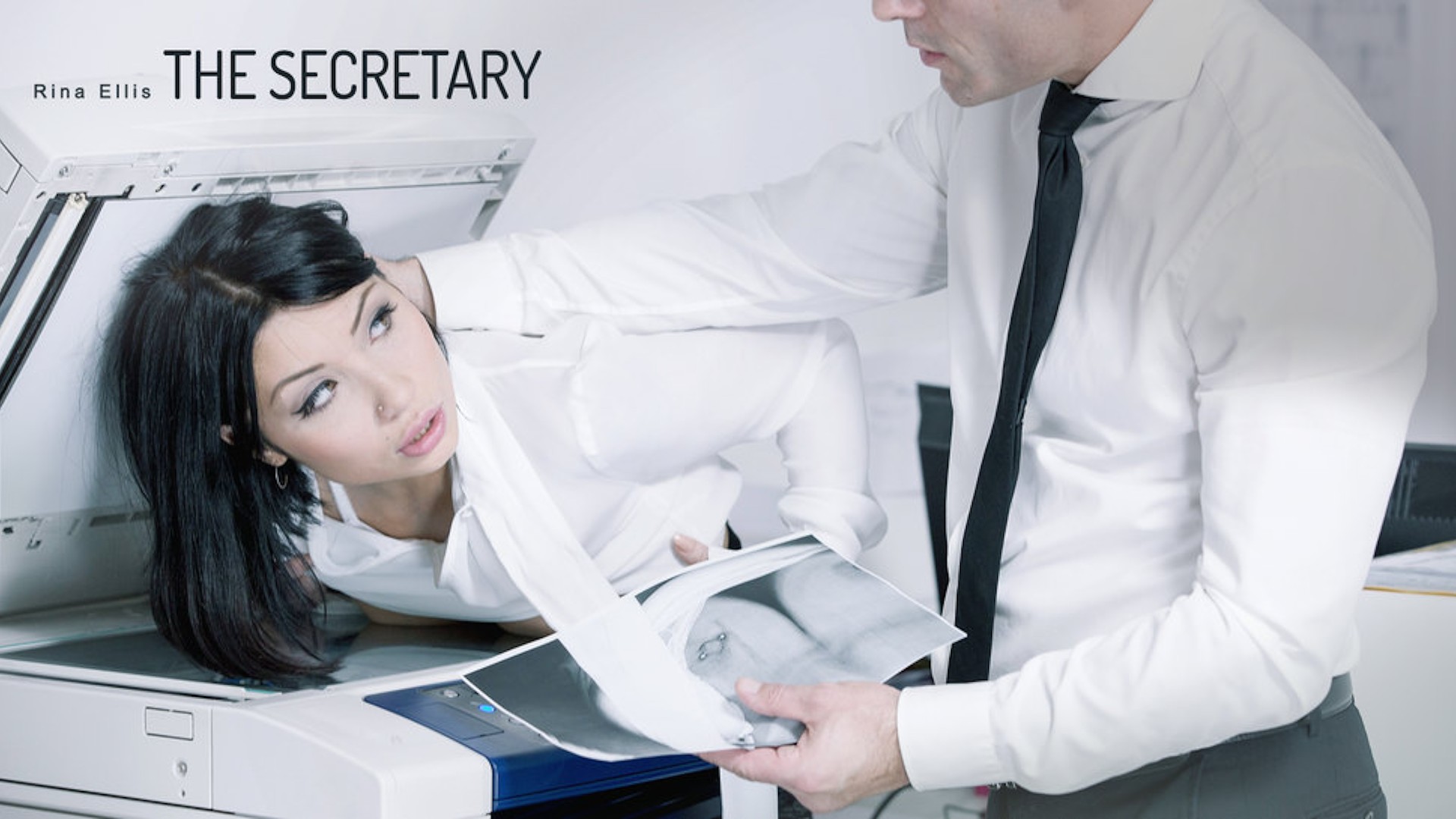 Even after 5 o'clock comes and goes, sexy secretary Rina Ellis is still busy typing away. But her co-worker Renato knows a distraction the exotic office girl won't refuse. Pulling out his throbbing cock for some after-hours fun, Rina is tempted away from her work by more pressing matters--a forbidden BDSM tryst with her secret lover! After a gagging, deepthroat blowjob, Renato leads Rina over to his desk by her raven hair. Slipping the lusty submissive's lace panties to the side, he thrusts inside her trembling pussy for a rough, passionate plowing that's sure to sweeten those long overtime hours.